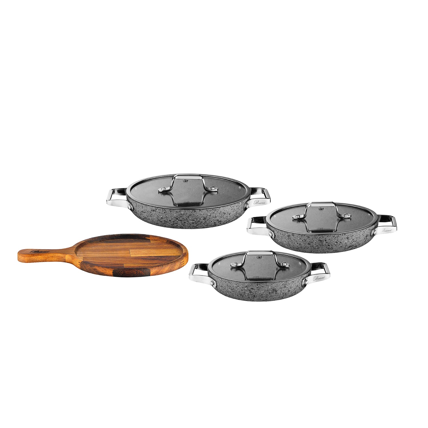 STONE-AGE SAHANLIK OMLET SETİ – 3’LÜ (18-20-22 CM) + AHŞAP SUNUMLUK
